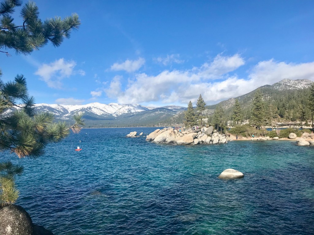A picturesque stop if there ever was one, showing off Tahoe’s crystal clear waters and round, granite rock formations. It’s located on the North East side of the lake (our one foray across state-lines into Nevada). This is an ideal spot for swimming (if you’re brave enough) and easy to access. For that reason, you MUST come early to obtain a parking spot. If you’re not an early-bird, try again around 4 pm for sunset– the NE side of the lake has the best views for sunset because it is west-facing.